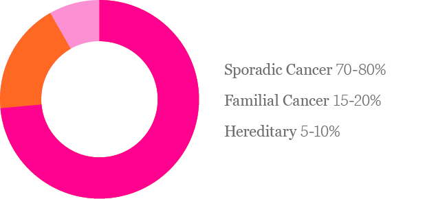 Only 5-10% of all breast cancers can be attributed to a hereditary cause– usually a germline pathogenic variant (mutation) in one of the cancer susceptibility genes (that may be inherited from one of the parents). A person with a mutation in one of these genes has a higher risk than the general population of developing breast, ovarian and/or other cancers.
